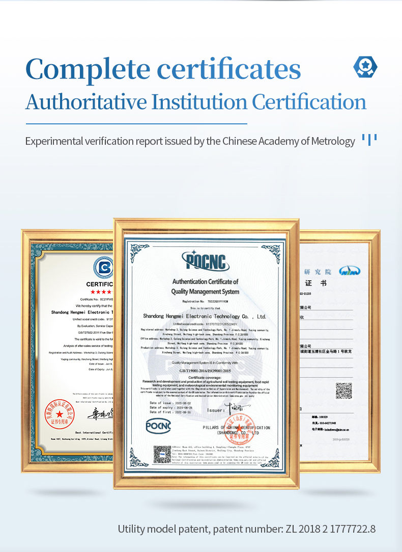 Testing speed: Under normal proficiency, it takes 20 minutes to test one soil sample (N, P, K) for three items (including reagent preparation and soil sample pre-treatment time). At the same time, it takes ≤ 40 minutes to test three soil samples (N, P, K), and ≤ 1 hour to test eight soil samples simultaneously.
