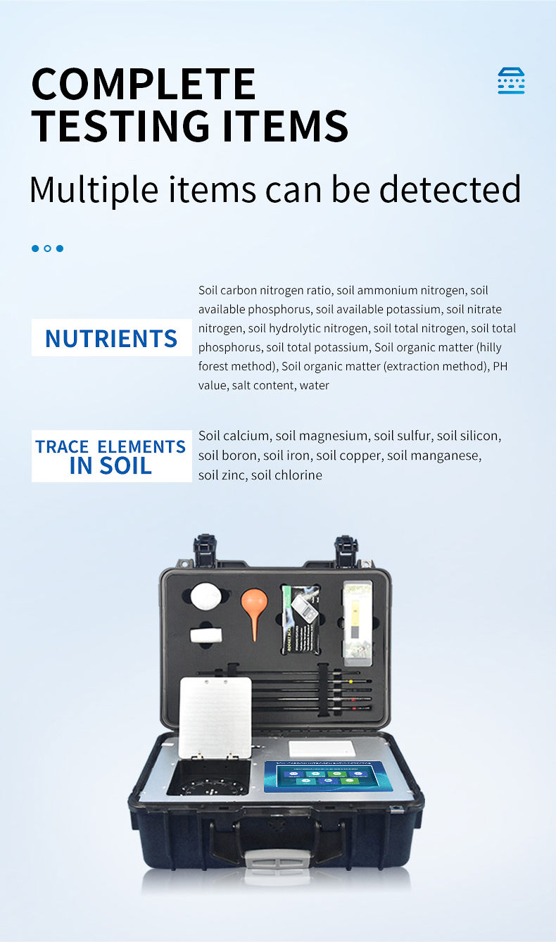 Measuring three soil samples (N, P, K) takes 20 minutes (including preparation time for chemicals and soil sample pretreatment time), while testing three soil samples (N, P, K) for ≤ 40 minutes, and testing eight soil samples for ≤ 1 hour.
