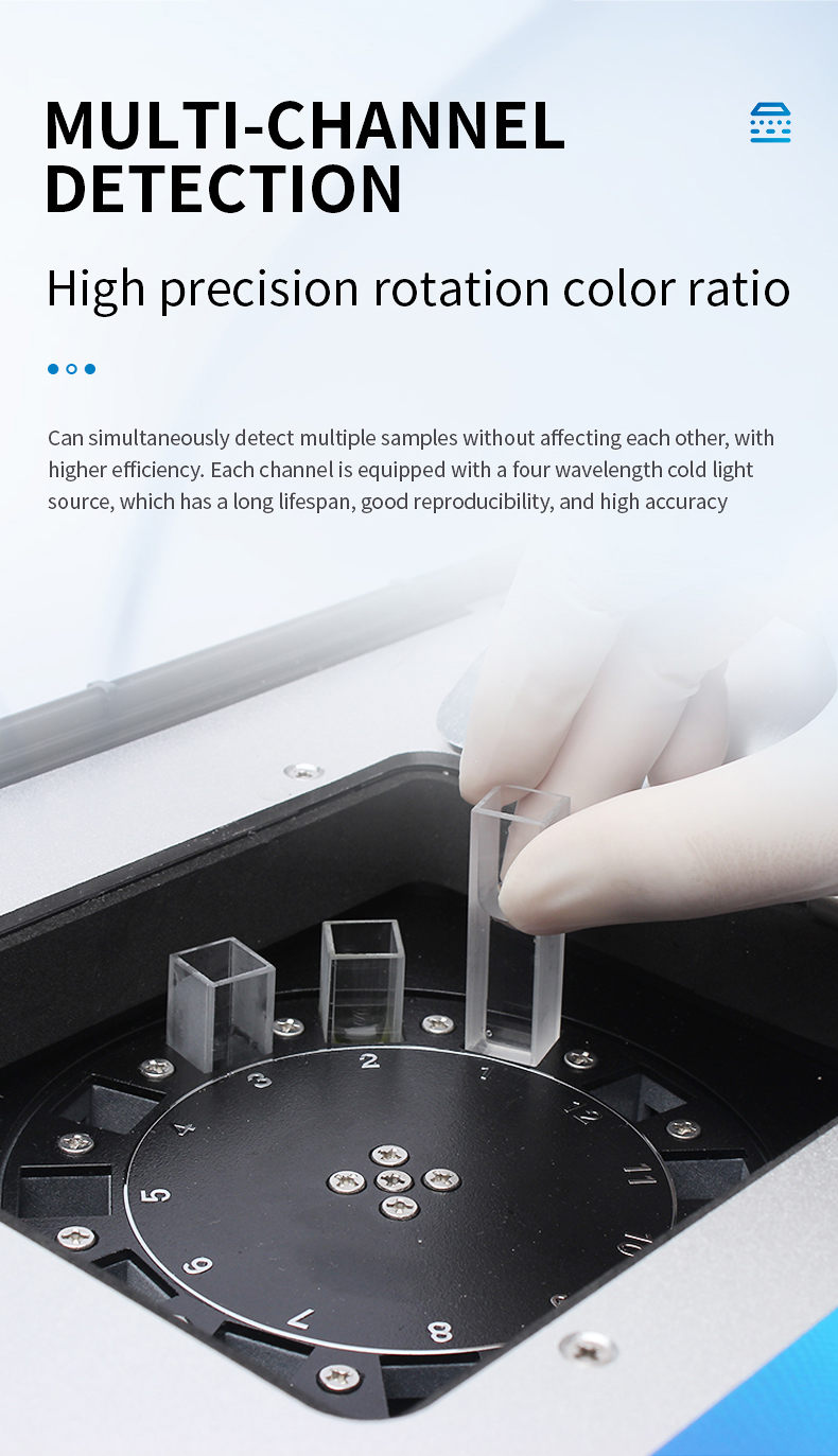 2. Adopting a precision rotating colorimetric cell design (patent number: ZL 2018 2 1777724.7), the consistency of the light source is more accurate, ensuring detection accuracy.