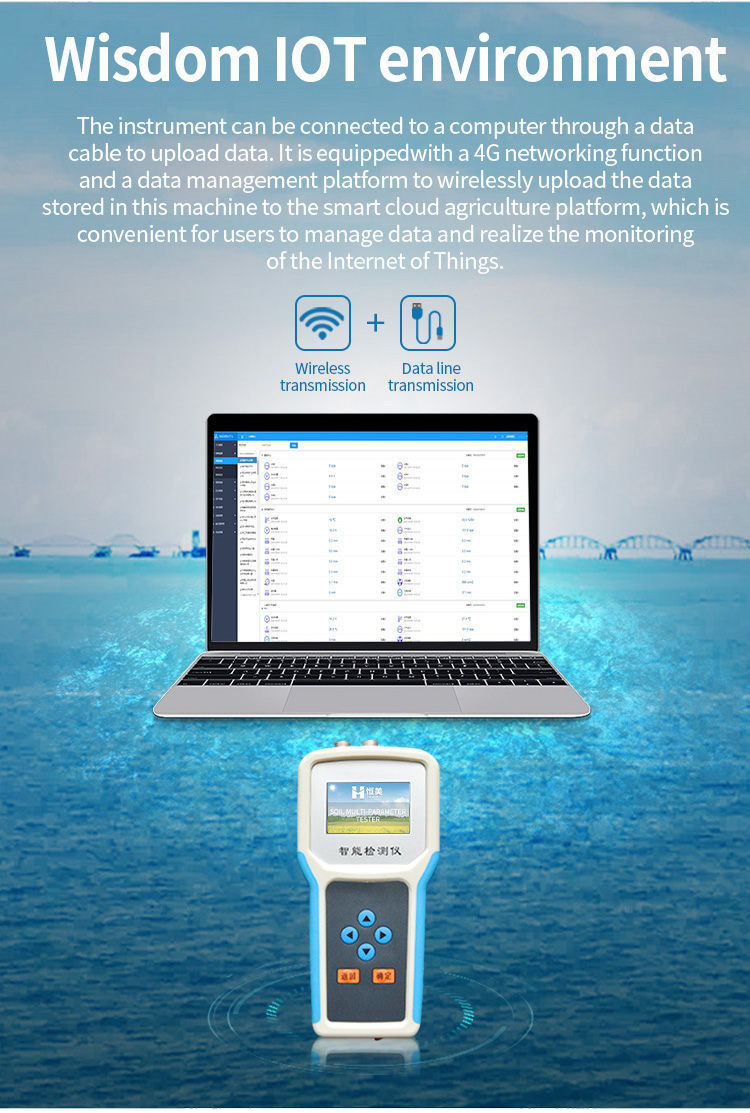 1. The instrument can be equipped with 4G networking function and data management platform, which wirelessly uploads the historical data stored on the machine to the Smart Cloud Agriculture Platform, facilitating users' data management and long-term analysis.