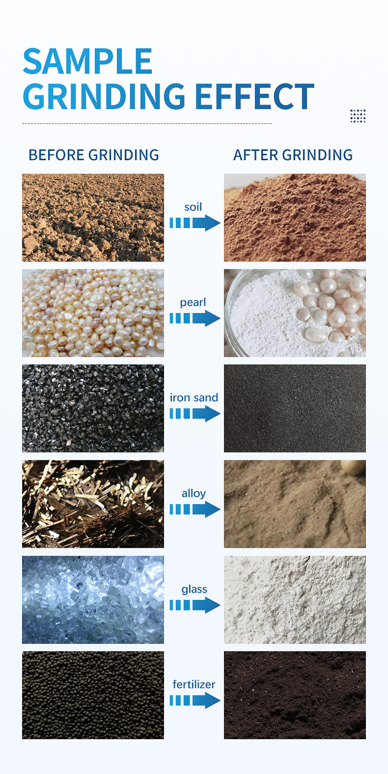 4. Maximum sample size: two-thirds of the capacity of the grinding tank