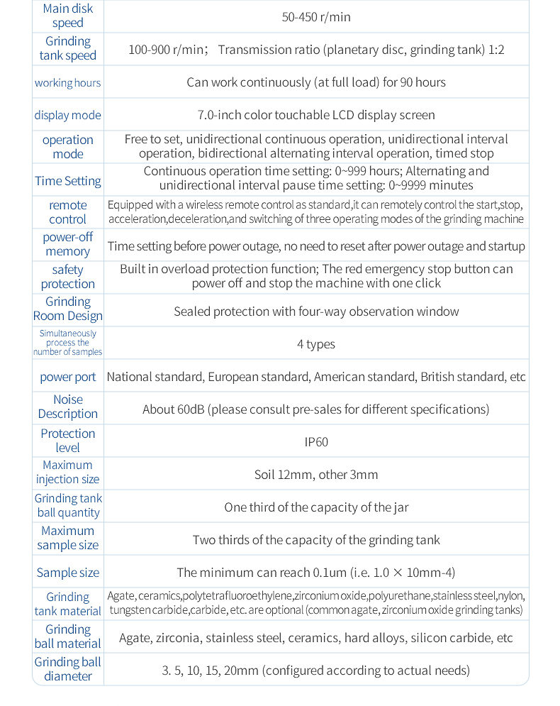 8. Grinding ball diameter: 3, 5, 10, 15, 20mm (configured according to actual needs)